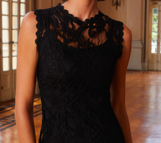This is the greatest dress I have bought in years. I love it so much I have puchrsed it in off white and black. Perfect mix of sexy and elegant. Timeless, sophisticated absolutely stunning. The material is also amazing. Tricot with silk tread; super soft; feels like a second skin in the body .
